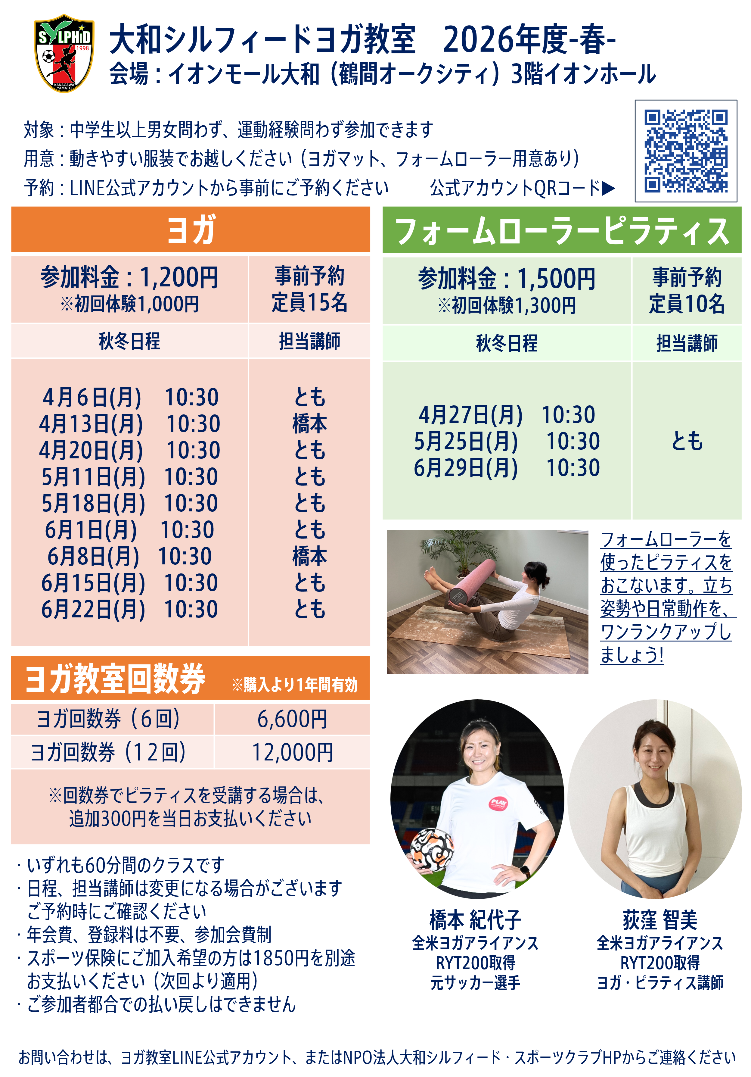 大和シルフィードヨガ教室公式LINE(スケジュール最新情報配信!クラス日程のお知らせ・ご予約も可能)